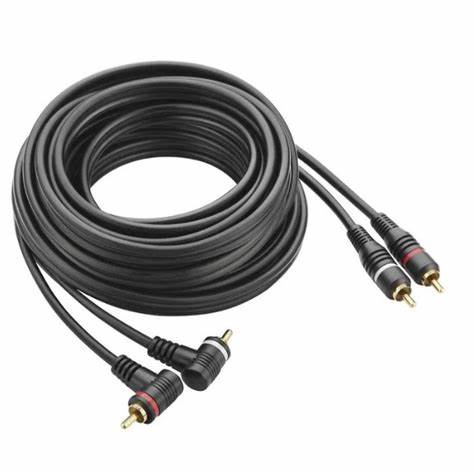 Cabo RCA 2 x 2 – 5,0 metros 4,0 mm – 2 Plugues Retos / 2 Plugues 90° – c/ Fio Terra