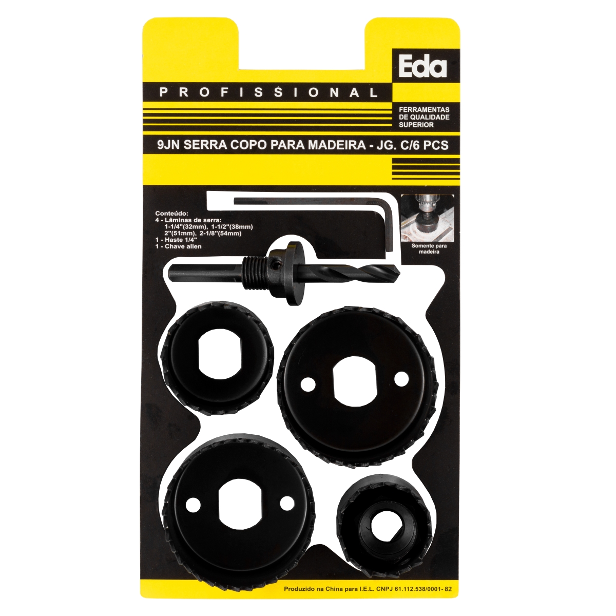 4 Lâminas medidas:- 1-1/4” (32mm)- 1-1/2” (38mm)- 2” (51mm)- 2-1/8” (54mm)